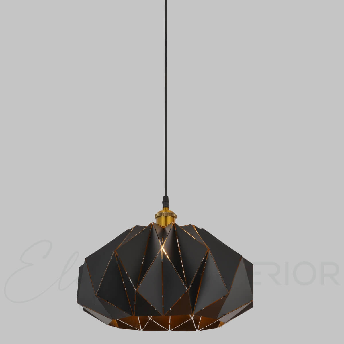 The Luna Pendant Light is a modern and elegant light fixture with a unique cut-out design. The pendant is made of black powder-coated steel with a luxurious gold interior. It hangs from a black cord and canopy and is equipped with a single E27 lamp holder. This light is perfect for any space and can be used alone or in a series for added impact.