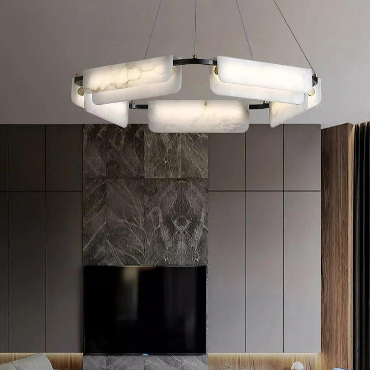 The Delia Alabaster Chandelier is a masterful blend of modern design and timeless elegance. Crafted from premium copper and adorned with luxurious alabaster accents, this chandelier features a sleek black and gold finish that adds sophistication to any space. Its minimalist silhouette complements contemporary interiors while the opulent materials elevate the room’s ambiance. Perfect for living rooms, restaurants, bars, hotels, or staircases, the Delia Chandelier transforms any area into a statement of refined luxury.