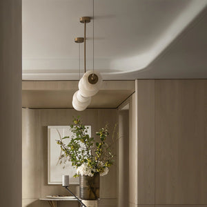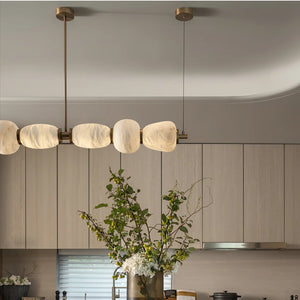 Ideal for dining tables, kitchen islands, or other statement areas, the Alabaster Pebble Linear Chandelier is a sculptural centerpiece that reflects Vakkerlight’s mastery in transforming natural materials into functional art. The 59.1″ suspension rod can be spliced for custom ceiling heights, ensuring a perfect fit for any interior.