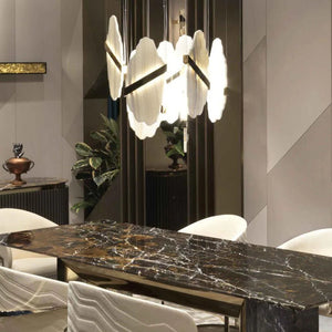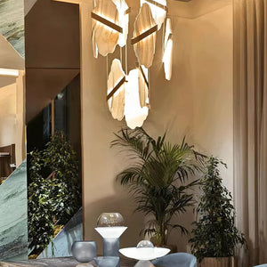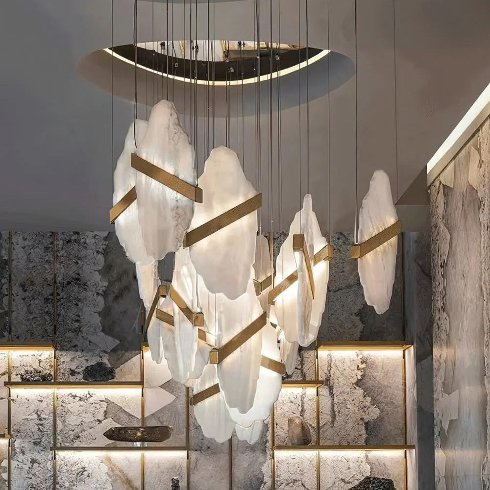 Natural Alabaster Panels – Each piece is uniquely textured, making every chandelier one-of-a-kind.