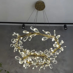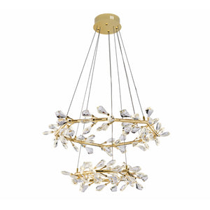 Elevate your living space with the Crystal Branch LED Chandelier, featuring a luxurious blend of 24K gold finish and clear crystal elements. This elegant pendant light showcases a unique crystal branch design, perfect for adding a touch of sophistication to modern and classic interiors alike. Whether hanging above a dining table, in a hallway, or as a statement piece in your living room, it promises to transform any space with its radiant lighting and stunning visual appeal.
