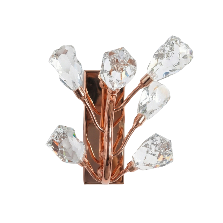 The Donya Crystal LED Wall Light brings a touch of elegance and sophistication to your space with its beautiful rose gold finish and crystal-like elements. This modern wall light is perfect for creating a warm and inviting atmosphere, whether in a living room, bedroom, or hallway. The soft LED light provides an energy-efficient solution while showcasing the stunning design. Its artistic, floral-inspired structure adds a stylish statement to any room.