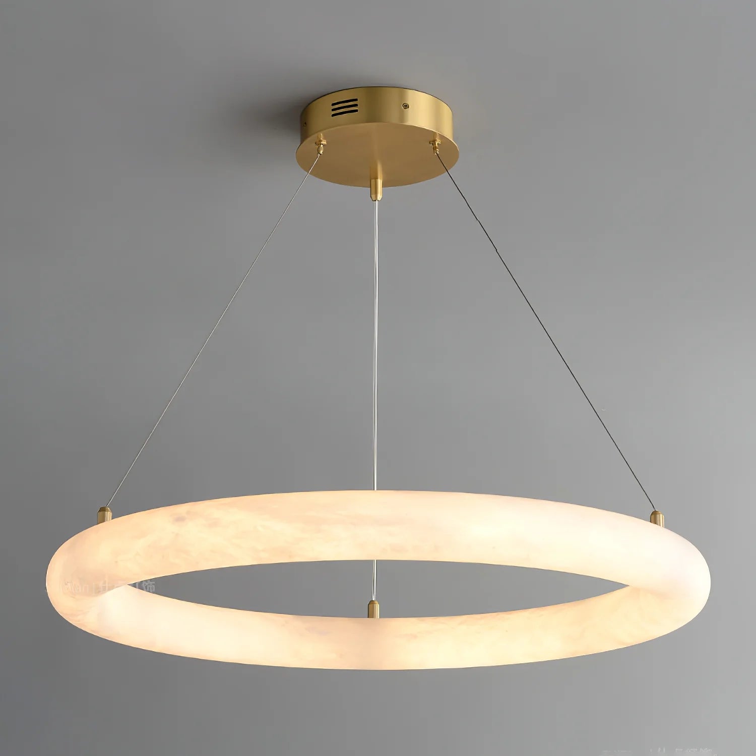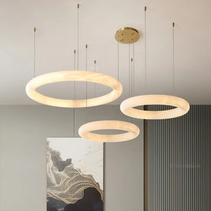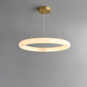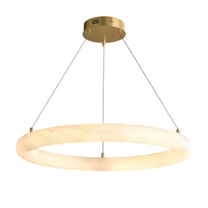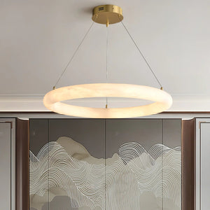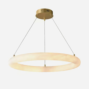 Sculptural Design: Solid alabaster forms a luminous, seamless ring.