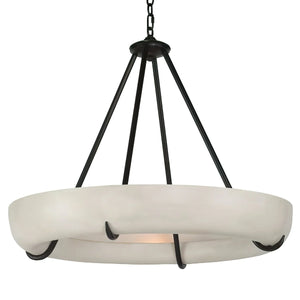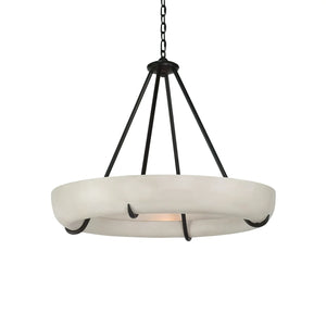 Elevate your interiors with the Orion Alabaster Chandelier, a stunning fusion of modern design and natural elegance. Crafted from genuine alabaster, its wide circular shade emits a warm, diffused glow, enhancing any room with a serene and inviting ambiance.