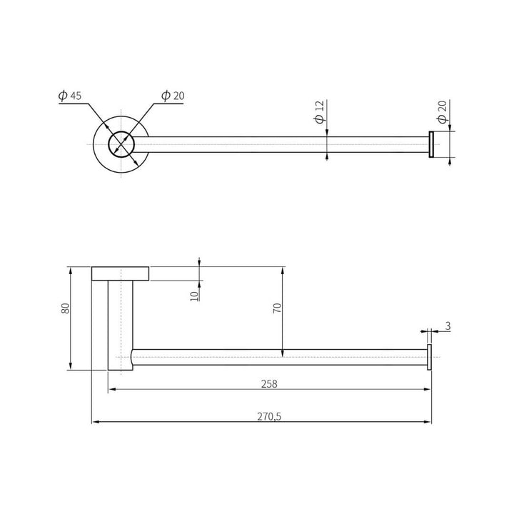 Add a touch of elegance to your bathroom with the Shrown Towel Holder from Eclipse Home. Featuring a modern, minimalist design, this towel holder is crafted with precision and functionality in mind. With a total length of 270.5mm, it provides ample space for hanging towels, while the 20mm diameter bar ensures durability and support.